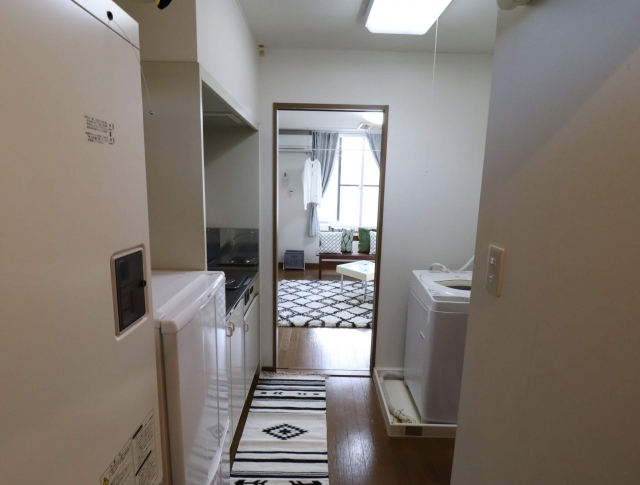 → 冷蔵庫・洗濯機・電子レンジ・炊飯器・掃除機・ケトルなど必要家電がまとまった構成